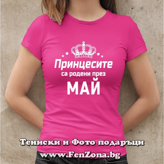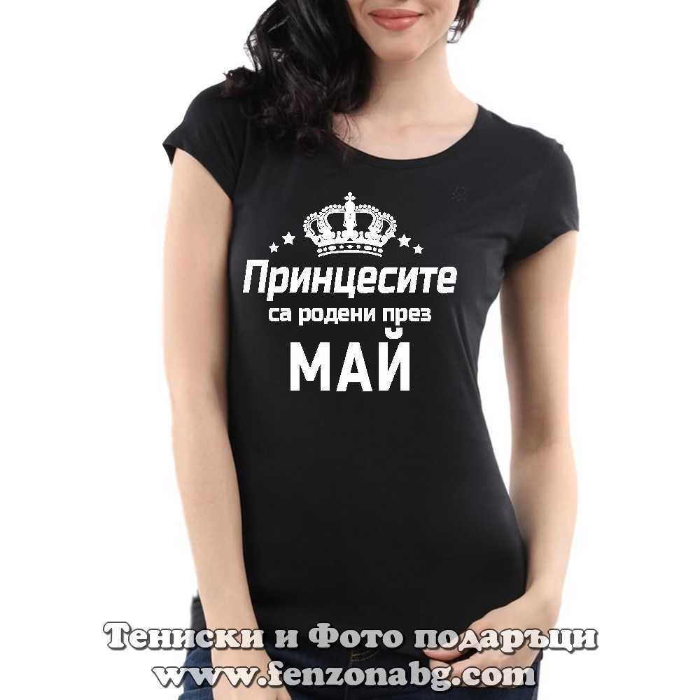 Дамска тениска подарък за рожден ден с надпис Принцесите са родени през Май