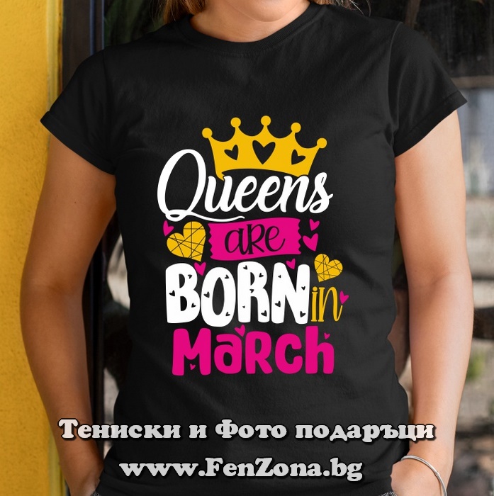 Код: damska-teniska-podaryk-za-rozhden-den-s-nadpis-queens-are-born-in-march-2-fen-zona