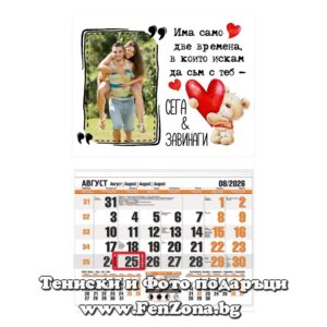 - Едносекционните календари със снимка са с размер 47 см височина и 30 см широчина. Предлагат се с 4 цвята основа - червена, синя, зелена и оранжева.