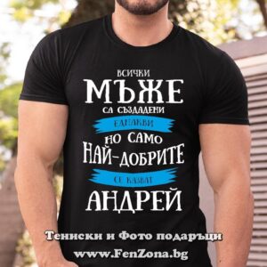 Мъжка тениска с надпис Само най-добрите мъже се казват Андрей