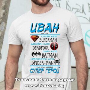 Мъжка тениска с надпис Иван роден да ловува, принуден да работи